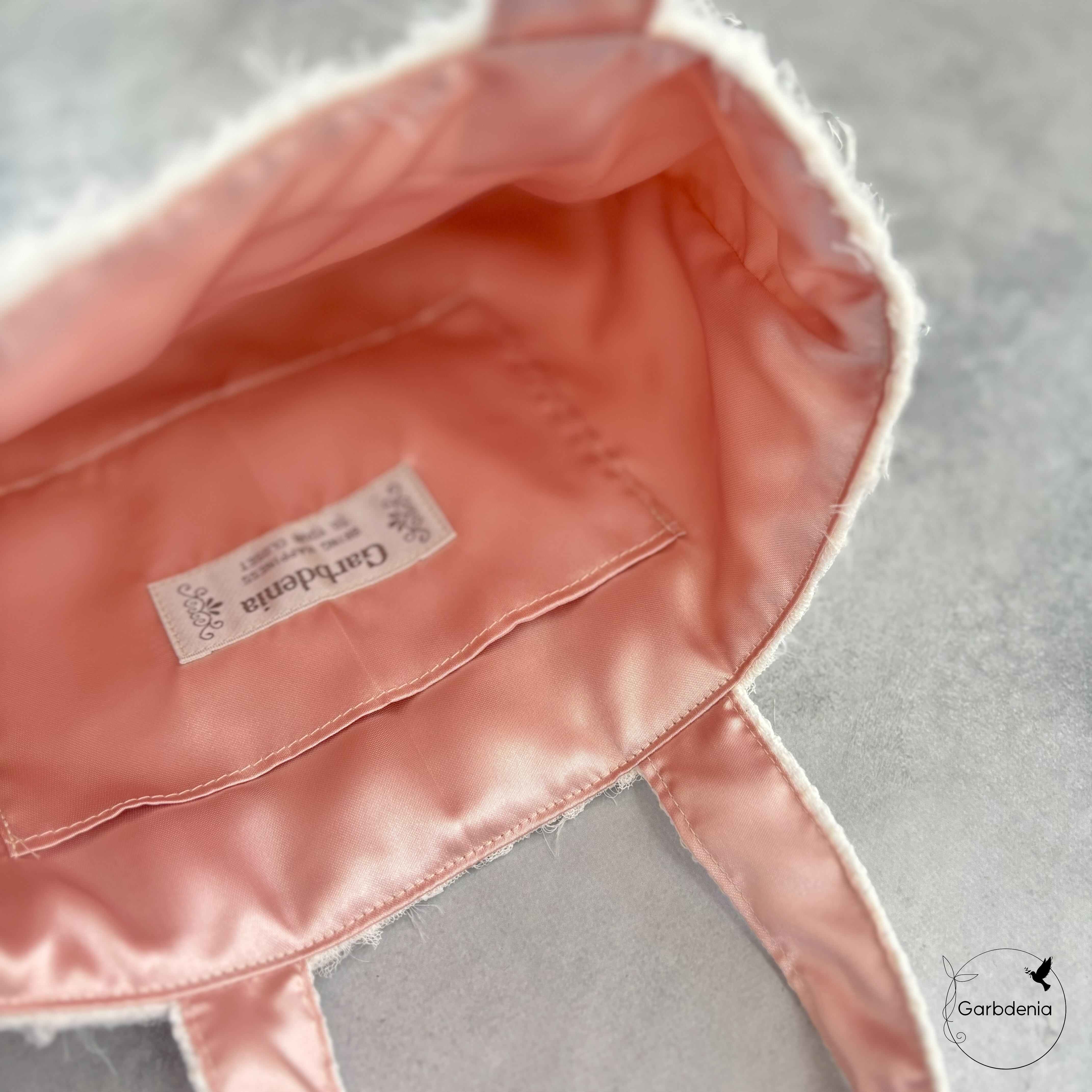 裏地は高級感のあるサテン素材で、ベビーピンクのお色が大人可愛くアクセントになっています。