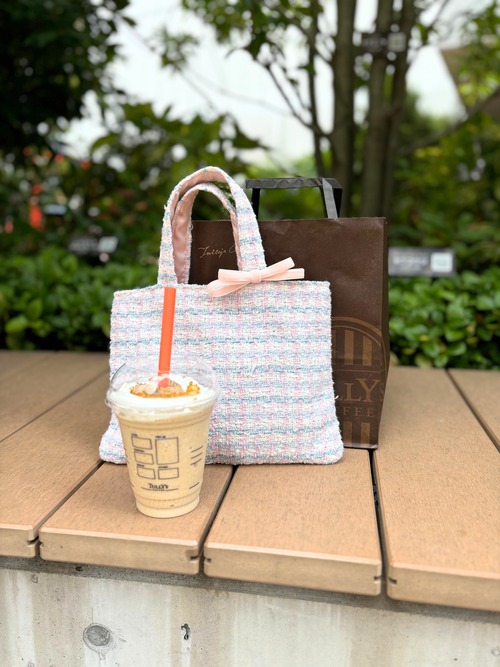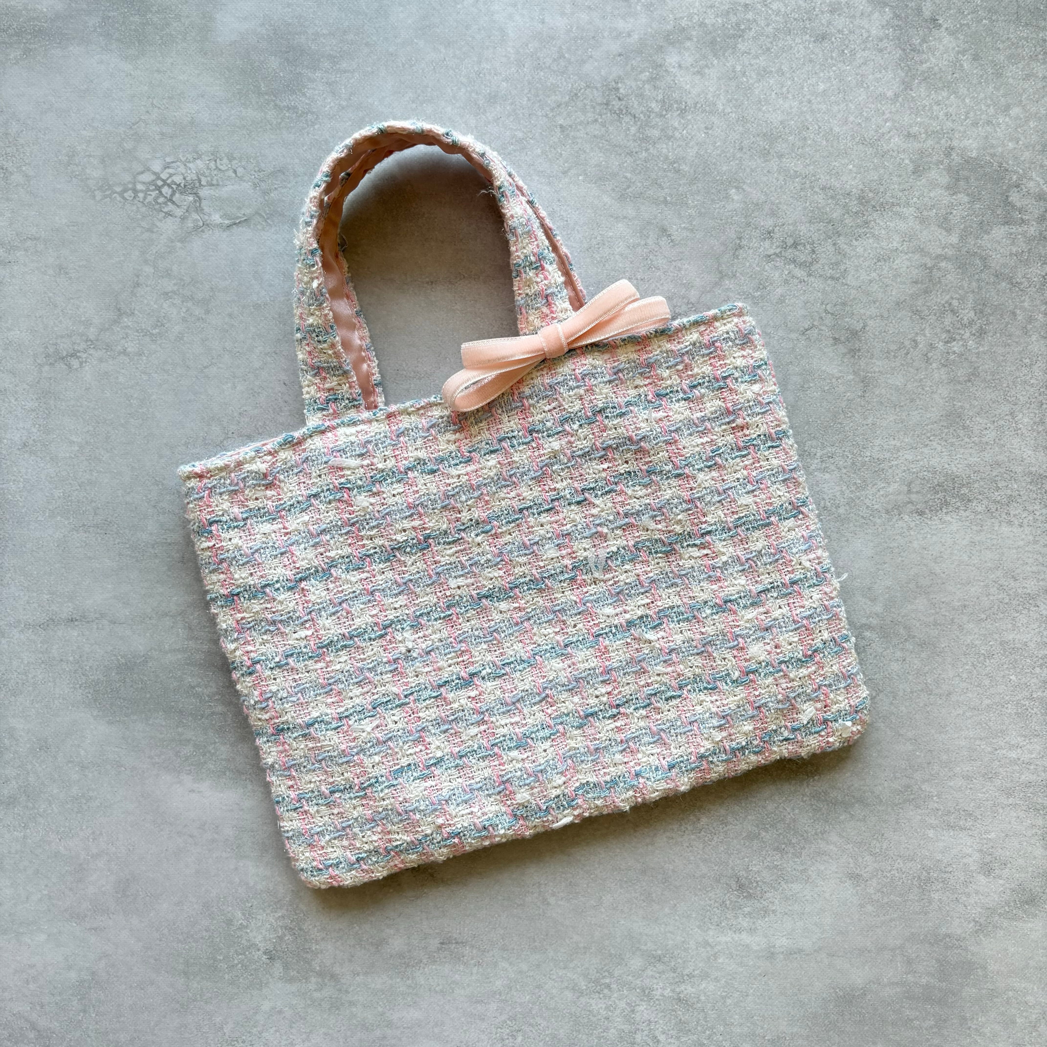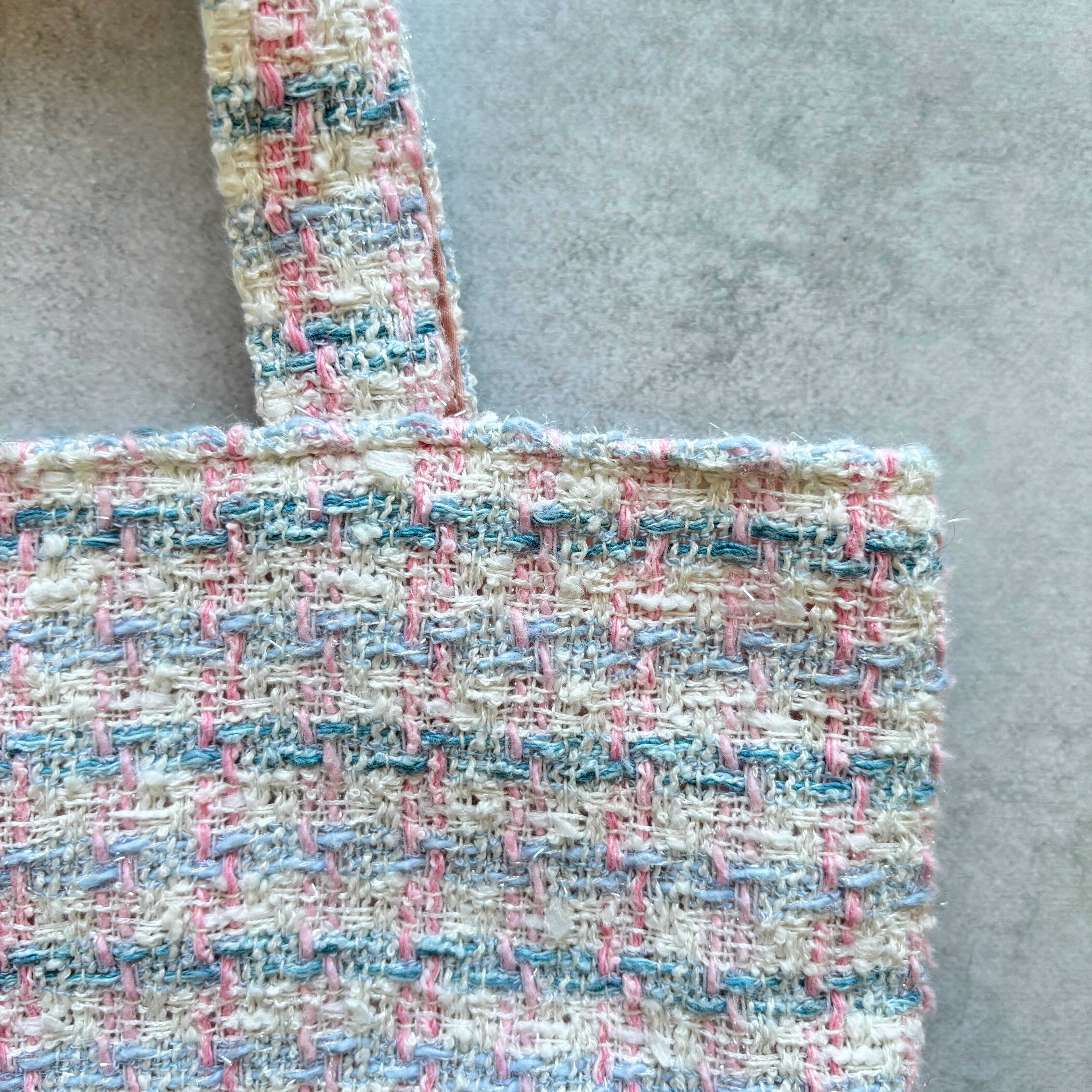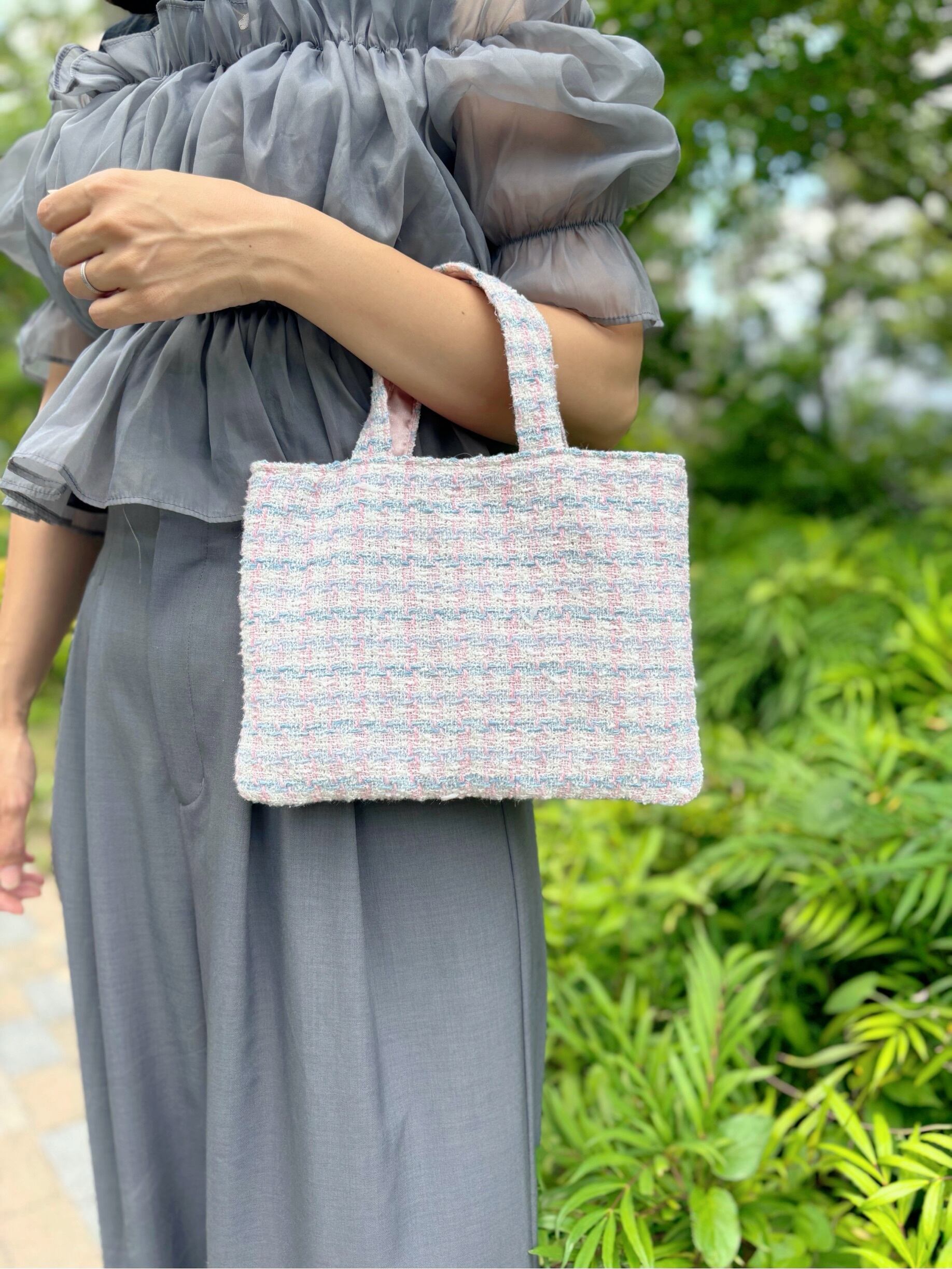 表地のツイードはピンクと水色の糸が織り込まれており、夏のコーディネートのアクセントにぴったりです。