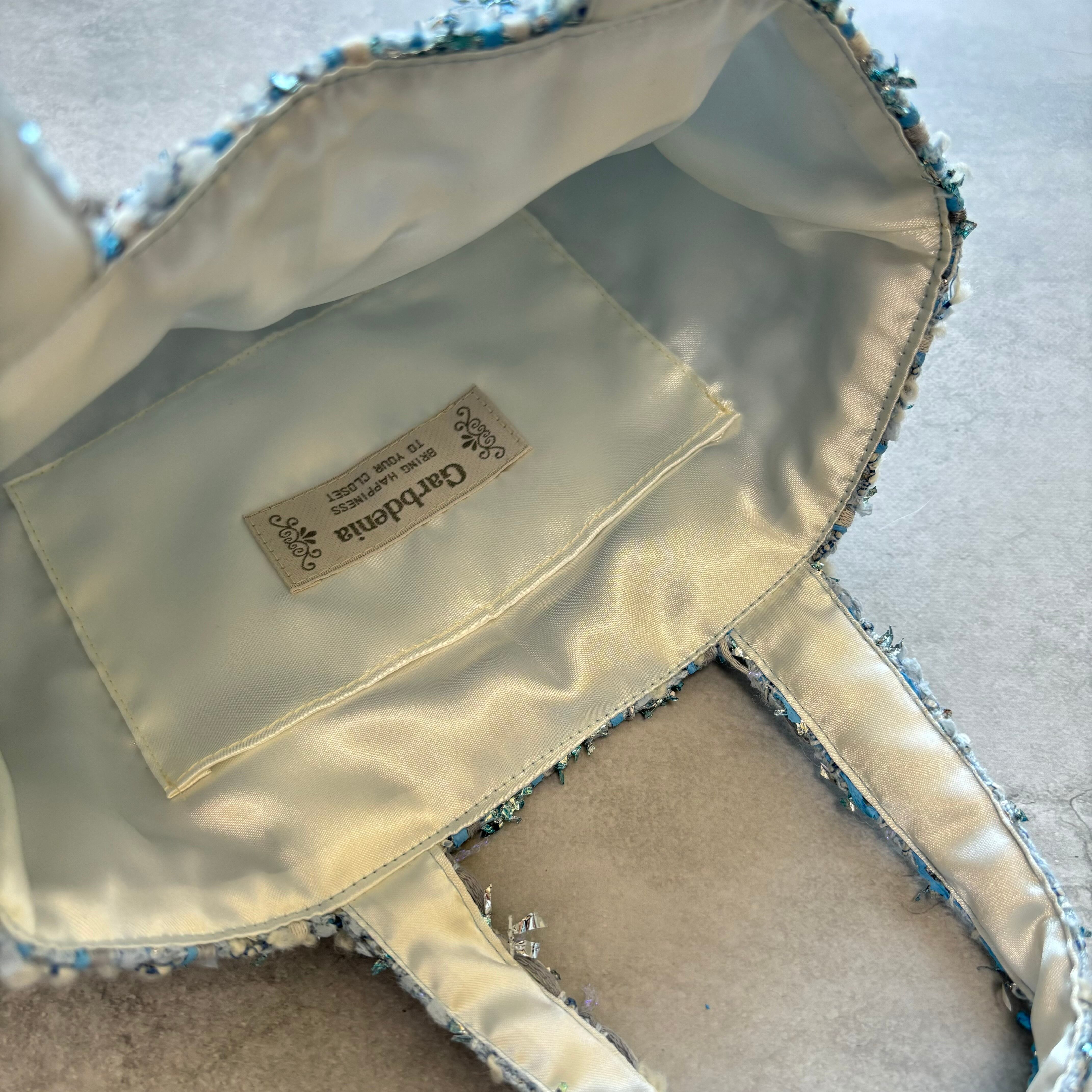 裏地は高級感のあるサテン素材で、表地の水色に合う爽やかなホワイトカラーです。