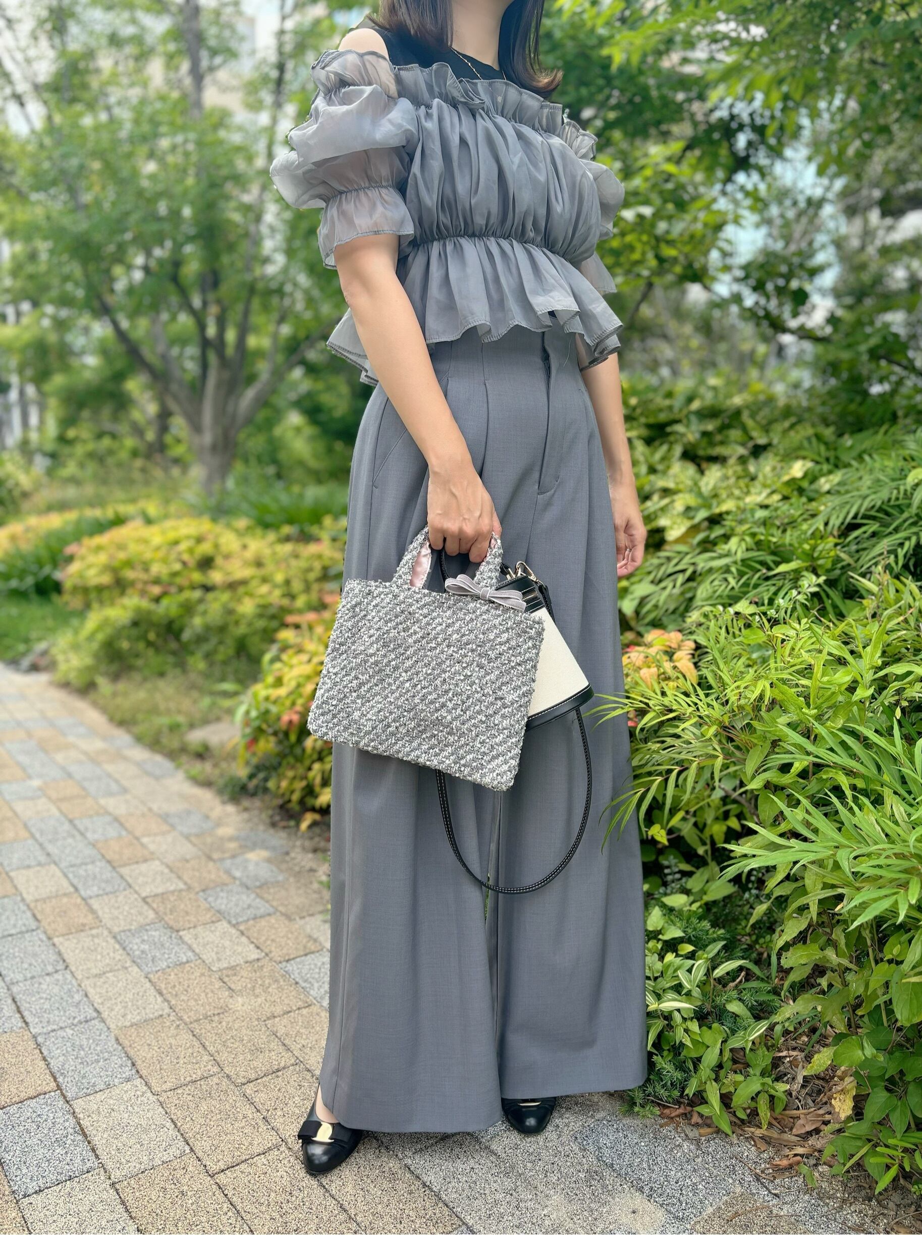 製造過程でバッグの仕上がりに若干歪みが生じている場合があります。生地の特性上ご了承ください。